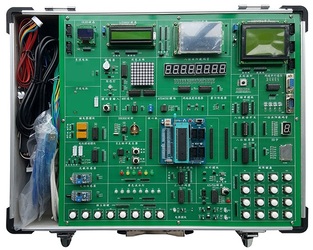 含箱體、電源、51CPU單片機核心系統、實(shí)驗模塊電路。 |