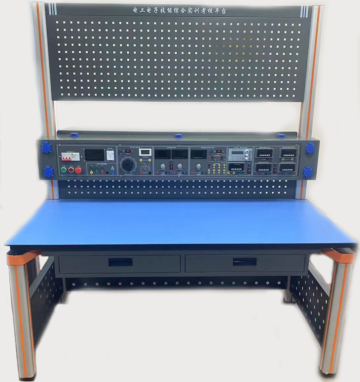 電工電子技能綜合實(shí)訓裝置由實(shí)驗主機箱、儀器架、實(shí)訓桌、移動(dòng)矮柜、電工電子實(shí)訓套件、學(xué)生凳等組成。實(shí)驗裝置支架與實(shí)驗桌可組合、可拆裝。支架與桌腳一體,鋁合金結構。