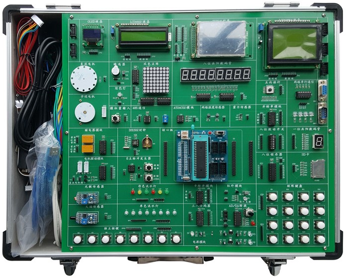 含箱體、電源、51CPU(STC12C5A60S2)單片機核心系統、實(shí)驗模塊電路。 |