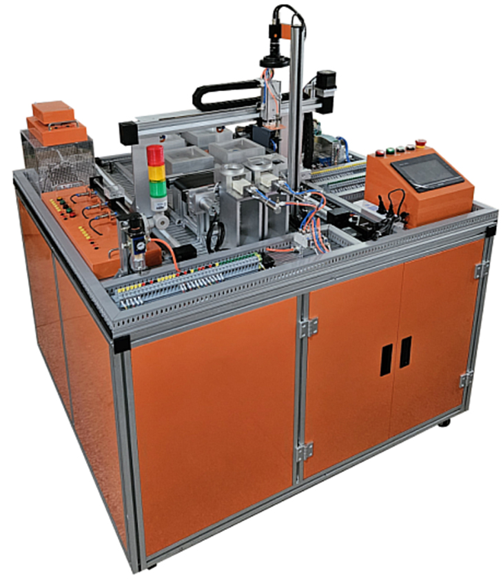 ★1、電氣智能化系統安裝技術(shù)實(shí)訓裝置,電氣智能化系統安裝技術(shù)實(shí)訓臺,電氣智能化系統安裝技術(shù)實(shí)訓設備包括電氣接線(xiàn)模塊、上料模塊、輸送線(xiàn)模塊、視覺(jué)識別模塊、三維模組控制模塊、稱(chēng)重模塊、RFID產(chǎn)品溯源模塊、物料擺放模塊、小車(chē)運動(dòng)控制模塊、溫控箱變頻控溫模塊。提供符合上述要求的裝置整體設計效果圖。
