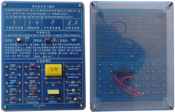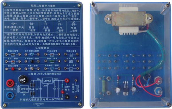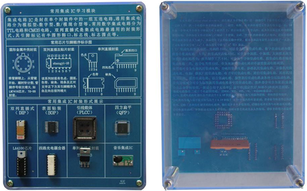 底盒使用190mm×145mm的開(kāi)模有機透明塑料底盒,模塊面板采用印制電路板PCB工藝,可以直觀(guān)看到器件的實(shí)物及相關(guān)的原理介紹。對于典型應用及易損器件安裝在面板背面,透過(guò)透明底盒能夠看到器件實(shí)物,方便感性認識、檢測測試,同時(shí)也能防止器件的損傷。
