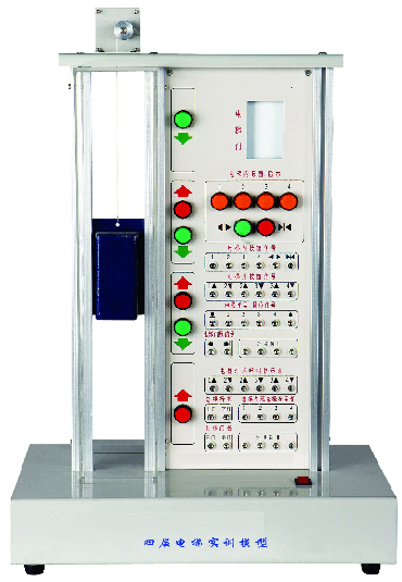 模型為微型實(shí)物的四層電梯模型,由底座、上下行轎箱、行程限位機構、呼叫指示燈、轎箱門(mén)、控制面板、控制電機、傳感器、傳動(dòng)機構等部件組成。相關(guān)控制接口均已引出。