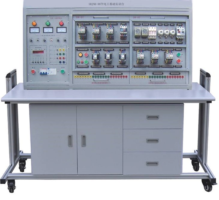 電工基礎實(shí)訓臺為配合我國職業(yè)教育和就業(yè)人員實(shí)際操作、培訓、鑒定的需求,我公司綜合了大中專(zhuān)院校、職業(yè)院校、技工學(xué)校的《電力控制技術(shù)》《電力拖動(dòng)控制線(xiàn)路與技能訓練》《工廠(chǎng)電氣控制技術(shù)》《繼電接觸控制技術(shù)》等相關(guān)科目的實(shí)驗及實(shí)訓教學(xué)內容而研發(fā)了本裝置。裝置采用掛箱結構,實(shí)訓項目可擴展性強,可擴展PLC與變頻調速實(shí)訓項目。所有的元器件通過(guò)導線(xiàn)引到接線(xiàn)端子上,有利于保護器件,通過(guò)線(xiàn)槽走線(xiàn),接近工業(yè)現場(chǎng)。