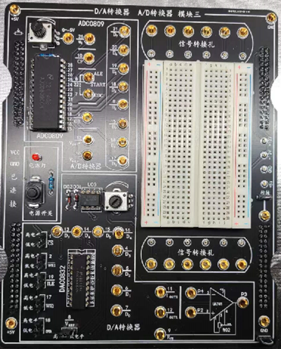 (6)實(shí)驗模塊:兩個(gè)底板模塊和8個(gè)實(shí)驗模塊。模塊上電阻:100Ω、510Ω、1kΩ、2kΩ、10kΩ、100kΩ、1MΩ諾干個(gè),電容:100pF、1000pF、0.01μF、0.022μF、0.1μF、 0.22μ10μF和100μF諾干個(gè),多圈電位器:1k和10k諾干個(gè)。