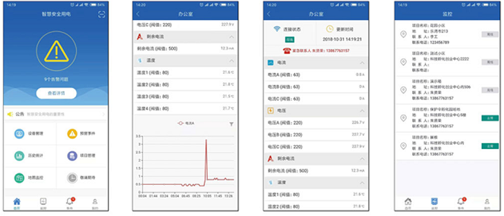 溫度:50-120度、漏電報警:50-1000MA連續可調、漏電報警通道:1路、溫度報警:4路、電流檢測通道:1路、電壓檢測通道:3路、報警方式:APP遠程報警