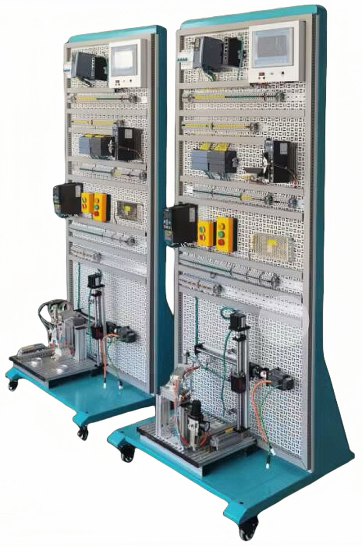 3)電氣控制系統∶ 開(kāi)放式工業(yè)機架結構,含成套器件;面板采用網(wǎng)孔板形式,4 只萬(wàn)向輪(2 只帶剎車(chē))?蓪 PLC、電源、變頻器、觸摸屏等安放在該平臺上,配有空氣開(kāi)關(guān)、接線(xiàn)端子、電纜線(xiàn)、輔料,接地可靠,設有漏電等保護裝置,安全性符合相關(guān)的國標標準,保護學(xué)生在實(shí)訓過(guò)程中的安全性。采用工業(yè)規范制作,所有接線(xiàn)有標號,便于實(shí)訓和日常維護。