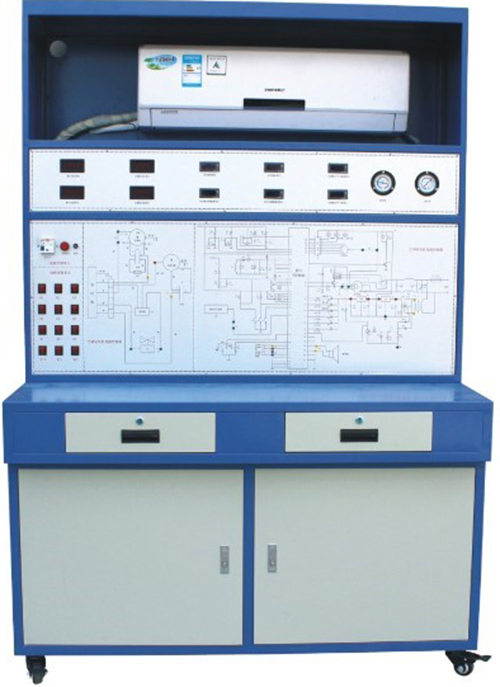 2. 裝置直觀(guān)展示了變頻空調的系統結構和工作原理,便于教學(xué)演示講解及學(xué)生對課本知識的理解掌握。配置的交流電壓表、交流電流表、溫度表、真空壓力表以及相應的信號指示燈,使整個(gè)變頻空調系統的實(shí)時(shí)工作狀態(tài)一目了然;主面板中間印有電氣控制系統原理圖,并設有相應測試點(diǎn);屏背面可觀(guān)察到整個(gè)制冷系統結構原理以及主要部件的實(shí)際物體,相應部件均有名稱(chēng)標識;并設有視液鏡,可觀(guān)察制冷劑狀態(tài)。