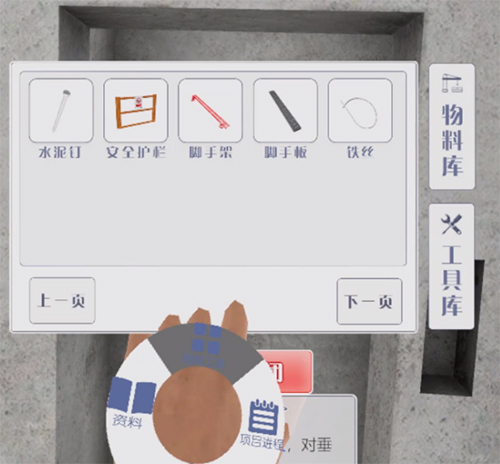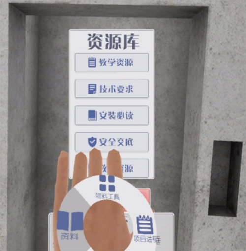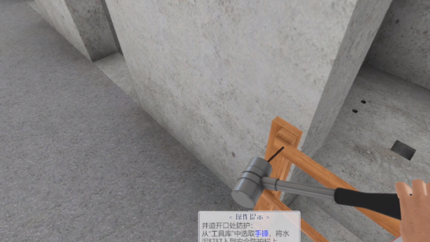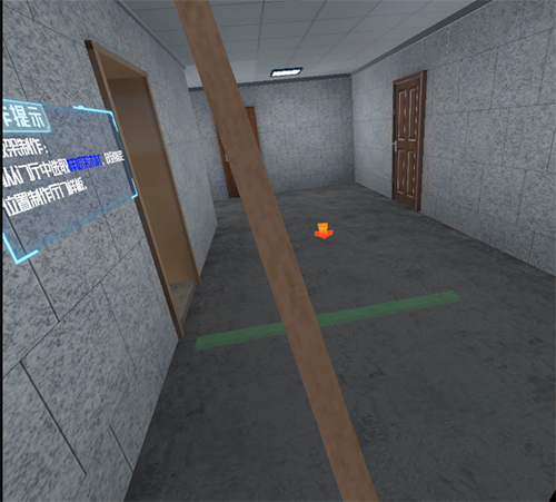 系統可以根據頭顯的定位和角度變換來(lái)進(jìn)行全場(chǎng)景的展示,在場(chǎng)景中可以體驗真實(shí)的施工環(huán)境和相對應的施工過(guò)程,增加沉浸感和體驗度。