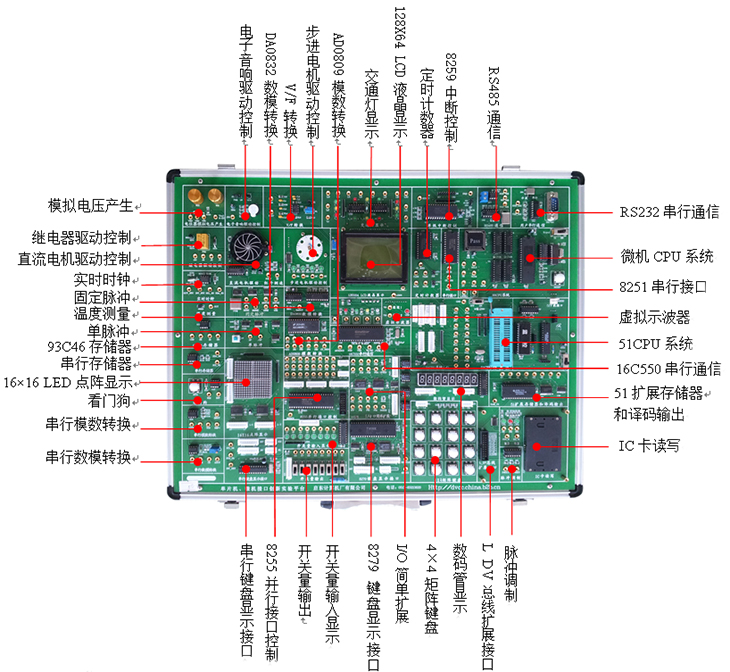含箱體、電源、51系統和88系統以及標配實(shí)驗電路 |