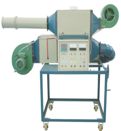 翅片管式熱管換熱器,加熱段循環(huán)加熱風(fēng)道,被加熱段加熱風(fēng)道,鼓風(fēng)機,風(fēng)機,笛形管流量計配差壓傳感器,加熱由固體調壓模塊無(wú)級調節,信號輸入巡檢儀顯示溫度、壓差,電流表,電壓表,不銹鋼臺架及控制屏等。
