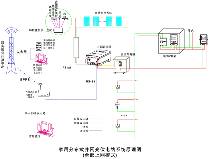 在晴朗的白天,裝在屋頂上的光伏組件發(fā)出的直流電經(jīng)過(guò)并網(wǎng)逆變器逆變成與電網(wǎng)同頻率同相位的單相交流電給負載進(jìn)行供電,在夜晚或陰雨天等太陽(yáng)光照不足的情況下,系統處于待機狀態(tài),負載用電全部來(lái)自電網(wǎng)。您可以通過(guò)系統監控軟件來(lái)實(shí)時(shí)查看系統的運行狀態(tài)和故障信息,或者是選配遠程通訊數據采集器,將系統工作數據通過(guò)GPRS或以太網(wǎng),傳輸到您的手機、平板電腦或任意一臺聯(lián)網(wǎng)的電腦,以便于您遠程實(shí)時(shí)掌控電站的信息。