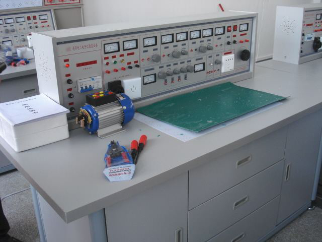 1、電工電子電力拖動(dòng)帶直流電機實(shí)驗桌:一臺二座,桌子外形尺寸:160×70×80cm。桌中央配置通用電路板。每張桌配有一粒膠皮板,以保護通用電路板及桌面(如需要在其上放置電機、焊接等)。桌下都是元件儲存柜,放置元器件。