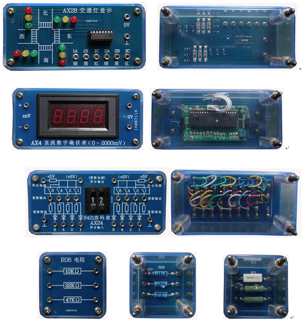 (透明電子元件模塊示例圖,共9塊板,140多只透明有機塑料封閉元件盒)