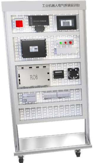 把工業(yè)級的機器人電氣柜的大部件拆散安裝在網(wǎng)孔架上,清晰體現機器人電氣連接原理。