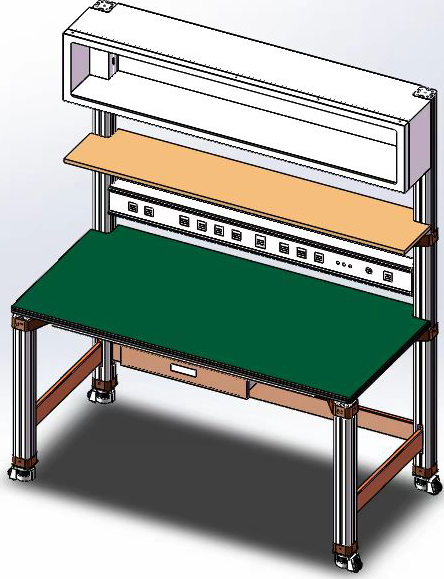 1、實(shí)訓桌:臺面采用不小于25mm厚浸漬膠膜紙飾面刨花板;型材立柱:截面尺寸不小于 70*70mm,四角圓弧不小于 R15mm 工業(yè)級鋁型材,表面陽(yáng)極氧化成本色;鋁壓鑄連接件:鋁壓鑄連接件,外形尺寸不小于160x166x70mm,壁厚不小于3mm,表面拋丸后噴塑處理;圍框框架:截面尺寸不小于 20*40mm 冷軋電鍍鋅方鋼管拼裝焊接制作,表面噴塑處理;固定于鋁壓鑄連接件上,用以連接臺架立柱;頂部拉桿:截面尺寸不小于 40*40mm 冷軋電鍍鋅方鋼管,表面噴塑處理;固定于頂部 2只鋁壓鑄連接件上,用以支撐頂部隔板;底部拉桿:截面尺寸不小于 20*80mm 冷軋電鍍鋅方鋼管拼裝焊接制作,表面噴塑處理;
