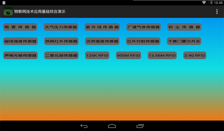 3、基礎學(xué)習單元:基礎學(xué)習單元提供一套Zigbee無(wú)線(xiàn)傳感網(wǎng)系統、RFID射頻識別系統、感知執行器控制系統,搭載著(zhù)二氧化碳、光照強度、聲響/光敏監測、大氣壓力、粉塵、紫外線(xiàn)、紅外對射、雨雪、磁場(chǎng)、熱釋紅外、廣譜氣體、干簧門(mén)磁/霍爾開(kāi)關(guān)等傳感器以及配套智能網(wǎng)關(guān)傳感器數據采集系統,學(xué)生可以對無(wú)線(xiàn)傳感網(wǎng)技術(shù)進(jìn)行學(xué)習并自行開(kāi)發(fā)構建綜合的無(wú)線(xiàn)傳感網(wǎng)系統,例如智能家居系統、智能農業(yè)系統、圖書(shū)管理系統、ETC不停車(chē)收費系統、地鐵閘機收費系統等。