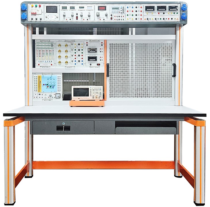 五、實(shí)訓操作桌:鐵質(zhì)雙層亞光密紋噴塑,桌面為防火、防水、耐磨高密度板,設有抽屜和元件儲存柜,結構堅固、造型美觀(guān)大方。