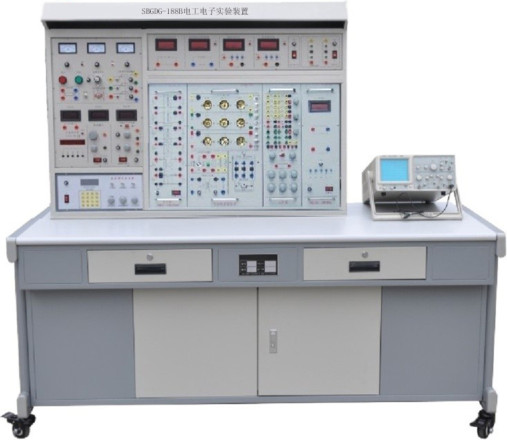 電工電子實(shí)驗裝置主要由電源儀器控制屏、實(shí)驗桌、實(shí)驗掛箱及三相鼠籠電機等組成。