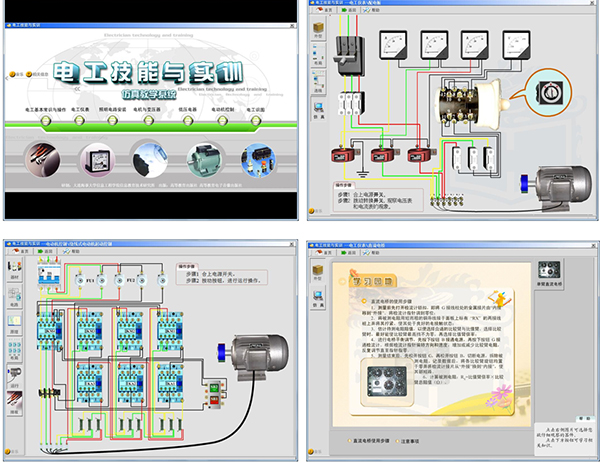 采用3D虛擬仿真技術(shù),用戶(hù)可以360度無(wú)死角觀(guān)察器件外觀(guān)細節;采用多媒體演示動(dòng)畫(huà)展示各種元器件的結構、功能、工作原理及控制方式;通過(guò)具有交互性的模擬仿真動(dòng)畫(huà),進(jìn)行電路的組裝調試和故障排除,實(shí)現無(wú)實(shí)物學(xué)習電工設備相關(guān)專(zhuān)業(yè)所涉及到的常用儀器設備、電氣檢測以及電機控制的實(shí)際操作技能和注意事項。包括但不限于: