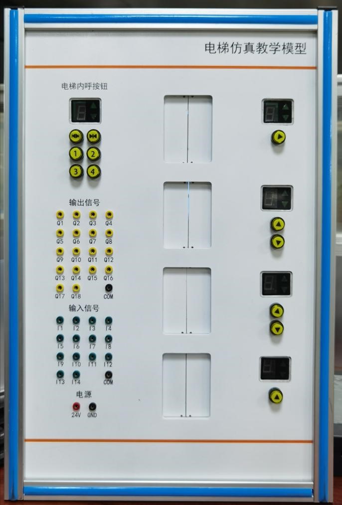 7.樓層顯示窗:它安裝在電梯模型面板的右側,通過(guò)操作帶有向上或向下箭頭的按鈕可以讓轎廂到達你所在的樓層,并可以顯示電梯轎廂運行位置。