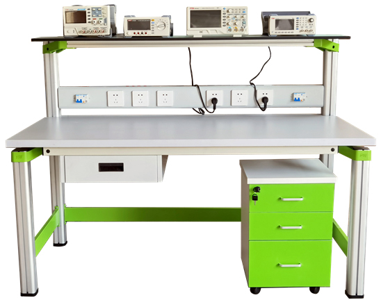 實(shí)驗桌后面二支截面尺寸70mm×70mm桌腳向上延伸,與一次成型鋁壓鑄框架連接構件構成(非焊接工藝)牢固的支架,與儀器架、電源控制箱組成一個(gè)完整的實(shí)訓屏。