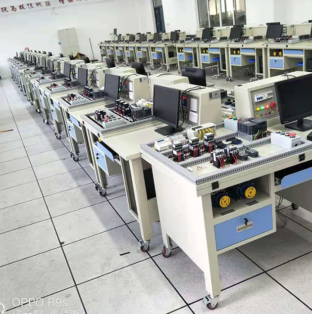 2.電氣實(shí)訓功能:該功能硬件部分包含:通用網(wǎng)孔板、角度調節支架、電氣器件等。角度調試結構根據人體工程學(xué)設計,通用安裝板可在0-60度電動(dòng)調節安裝角度,學(xué)生可以根據身高和操作習慣進(jìn)行角度調節,符合人機工程需求。學(xué)生可以在網(wǎng)孔板上進(jìn)行日常的器件安裝與電氣線(xiàn)路的接線(xiàn)等,可以讓學(xué)生掌握電氣的設計、安裝、調試與優(yōu)化等技能。