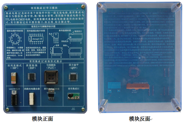 底盒使用190mm×145mm的開(kāi)模有機透明塑料底盒,模塊面板采用印制電路板PCB工藝,可以直觀(guān)看到器件的實(shí)物及相關(guān)的原理介紹。對于典型應用及易損器件安裝在面板背面,透過(guò)透明底盒能夠看到器件實(shí)物,方便感性認識、檢測測試,同時(shí)也能防止器件的損傷。