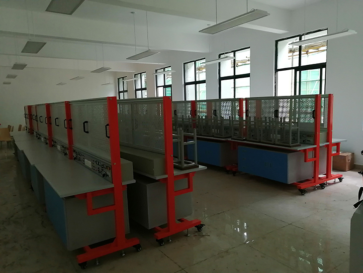 電氣裝配實(shí)訓臺、由實(shí)訓屏(內置電源)、實(shí)訓桌、實(shí)訓儲物柜三大部分組成。