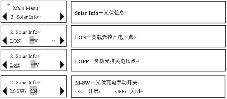 Ø 光伏充電開(kāi)關(guān)功能在控制器上用戶(hù)可以手動(dòng)設置光伏充電的打開(kāi)或關(guān)閉。