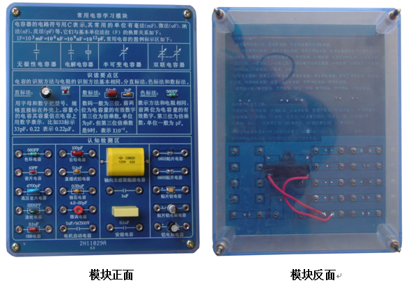 底盒使用190mm×145mm的開(kāi)模有機透明塑料底盒,模塊面板采用印制電路板PCB工藝,可以直觀(guān)看到器件的實(shí)物及相關(guān)的原理介紹。對于典型應用及易損器件安裝在面板背面,透過(guò)透明底盒能夠看到器件實(shí)物,方便感性認識、檢測測試,同時(shí)也能防止器件的損傷。