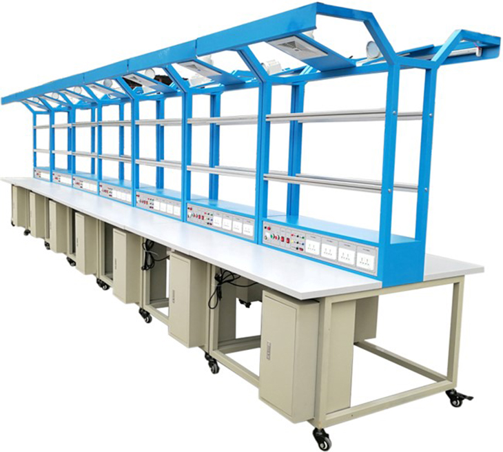 電子工藝實(shí)訓臺每臺包含2個(gè)工位,外形尺寸:長(cháng)×寬×高≥1100mm×1200mm×2000mm(雙面型:設備背靠背,操作工位面對面)。