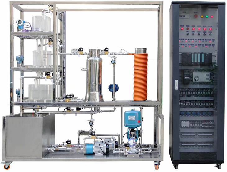 實(shí)驗對象系統包含有:不銹鋼儲水箱;上、中、下三個(gè)串接有機玻璃圓筒型水箱;三相4.5kW電加熱鍋爐(由不銹鋼鍋爐內膽加溫筒和封閉式外循環(huán)不銹鋼冷卻鍋爐夾套構成)和鋁塑盤(pán)管組成。
