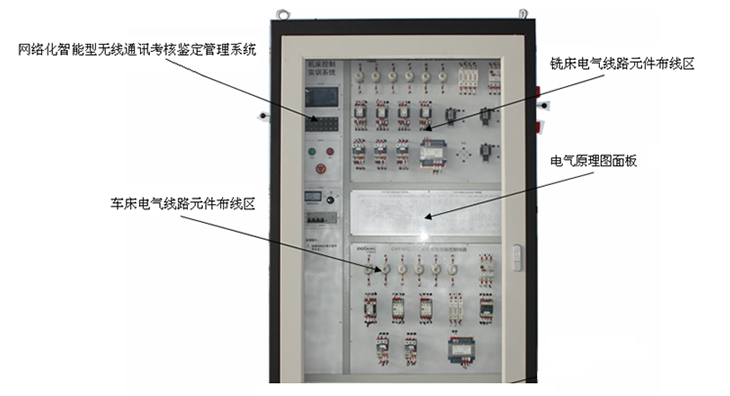 技能實(shí)訓考核柜 四個(gè)機床操作按鈕及機床指示區面板 四個(gè)機床電氣線(xiàn)路元器件布線(xiàn)區 兩個(gè)機床轉接模塊區 網(wǎng)絡(luò )化智能型機床實(shí)訓考核鑒定管理系統 |