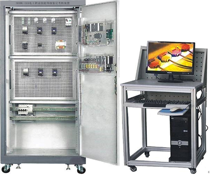 "電工職業(yè)技能考核裝置" 是根據勞動(dòng)和社會(huì )保障部與機械工業(yè)部聯(lián)合頒發(fā)的《工人技術(shù)等級標準》和《職業(yè)技能鑒定標準》的要求進(jìn)行設計,可針對機械工業(yè)出版社出版的機械工人職業(yè)技能培訓教材《高級維修電工技術(shù)》中列出的電氣控制線(xiàn)路和實(shí)用電子線(xiàn)路等進(jìn)行實(shí)際操作訓練;同時(shí)還參考了部分省市《高級維修電工技能考核試題》的操作考核項目。本實(shí)訓柜實(shí)訓內容包括實(shí)用電子技術(shù)、繼電控制電路、機床電路、雙速電機控制電路、直流電機控制電路、PLC控制、變頻器應用、直流調速器應用、觸摸屏應用等,是一套集培訓學(xué)習、理論驗證、實(shí)際操作訓練、考核鑒定于一體的多功能設備。