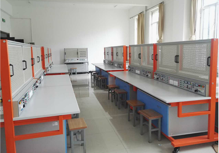 2、實(shí)訓桌桌面采用25mm麻灰色高密度層壓板封邊特制,有效提高絕緣等級;實(shí)驗桌底部裝有至少4個(gè)導向輪,方便實(shí)訓臺架移動(dòng);