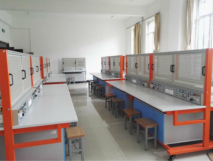 2、實(shí)訓桌桌面采用25mm麻灰色高密度層壓板封邊特制,有效提高絕緣等級;實(shí)驗桌底部裝有至少4個(gè)導向輪,方便實(shí)訓臺架移動(dòng);
