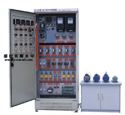 該裝置按標準電氣控制柜設計制造規格,充分利用雙面位置,柜內裝有完成各種照明電路所需的單相電度表、日光燈、單聯(lián)開(kāi)關(guān)、插座、感應開(kāi)關(guān)、漏電開(kāi)關(guān)等,以及電氣控制所需要的多種低壓電器,如漏電斷路器、熔斷器、電流互感器、交流接觸器、時(shí)間繼電器、熱繼電器、中間繼電器、行程開(kāi)關(guān)、按鈕、信號燈、轉換開(kāi)關(guān)、電壓表、電流表、功率表及電度表等,為了延長(cháng)電器使用壽命,各電器的接點(diǎn)都與接線(xiàn)端子相連,再由接線(xiàn)端子與被控制電氣連接。