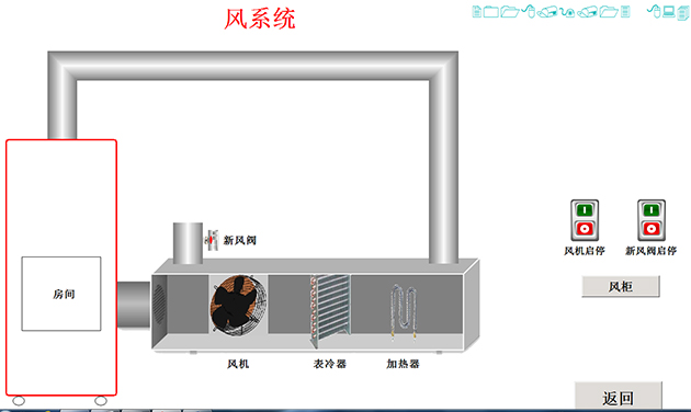 (3),系統故障運行演示:在配置有實(shí)物中央空調實(shí)訓考核裝置時(shí),在軟件演示故障時(shí)系統動(dòng)畫(huà)與實(shí)物實(shí)時(shí)故障同步,讓學(xué)生更好地撐握空調原理、操作方法,如壓縮機系統、制冷系統、制熱系統、風(fēng)系統、集中送風(fēng)系統、半集中送風(fēng)系統的原理過(guò)程。