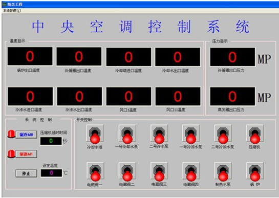 教師臺和學(xué)生臺電腦(1~32臺)可以同時(shí)監控中央空調的運行狀態(tài),對中央空調的壓力、溫度等相關(guān)數據進(jìn)行采集和顯示。