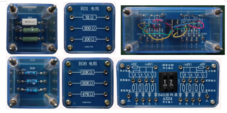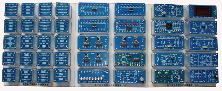 提供電工電子透明實(shí)訓模塊,可以完成直流電路、模擬電子技術(shù)、數字電子技術(shù)和電子綜合應用實(shí)訓項目。實(shí)訓模塊面板采用PCB板制作而成,器件和信號接口均已引至板上的專(zhuān)用插座,實(shí)訓模塊有四個(gè)彈性插腳,與專(zhuān)用實(shí)訓孔板配套使用。