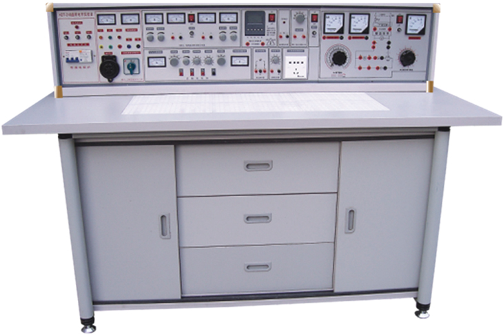(一)實(shí)驗桌:學(xué)生實(shí)驗桌12張,一桌二座,實(shí)驗桌外形尺寸為160×70×80cm。桌子中央配置九孔電路插板,電路板注塑而成,表面布有九孔成一組相互聯(lián)通的插孔,元件盒在其上任意拼插成實(shí)驗電路。元件盒盒體透明直觀(guān),內裝電阻、電容、電感、二極管、三極管、場(chǎng)效應管、可控硅等元件來(lái)完成原理實(shí)驗。內裝元件一目了然,盒蓋印有永不褪色元件符號,線(xiàn)條清晰美觀(guān)。盒體與盒蓋采用較科學(xué)的壓卡式結構,維修、拆裝方便。繼電部分訓練元器件已裝在特制的元件盒上,實(shí)訓時(shí)插在九孔電路板上即可連線(xiàn)實(shí)驗,方便,靈活。電子技能實(shí)訓項目由二十幾套實(shí)訓電路板和相應元器件來(lái)完成。每張操作桌配有一粒膠皮板,保護通用電路板和桌面(如需要在桌上放置電動(dòng)機,焊接等) 桌子下部是元器件儲存柜,放置實(shí)驗元件、器材、工具等。
