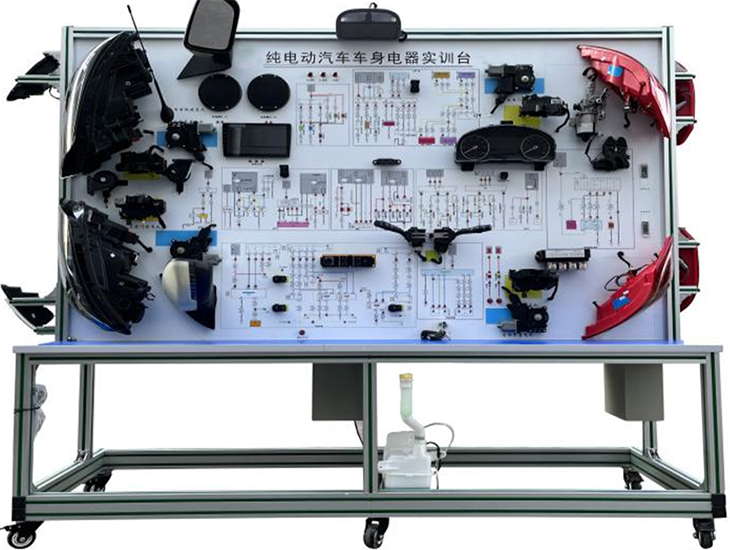 新能源汽車(chē)電氣系統測試設備采用(高速)純電動(dòng)汽車(chē)車(chē)身電器系統實(shí)物為基礎,充分展示純電動(dòng)汽車(chē)儀表系統、燈光系統、雨刮系統、喇叭系統、低壓電源電器系統、電動(dòng)車(chē)窗系統、電動(dòng)門(mén)鎖、音響系統等低壓電器系統的組成結構和工作過(guò)程。適合于各類(lèi)院校對純電動(dòng)車(chē)車(chē)身電器系統理論和維修實(shí)訓的拆裝與維護、結構與原理認知、系統操作、功能動(dòng)態(tài)演示、故障檢測與診斷教學(xué)需要。