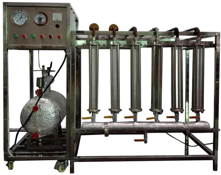 紫銅傳熱管道(銅裸管、涂黑管、翅片管、玻璃絲棉保溫管、鋸末保溫管、鍍鉻管各一組),調節閥門(mén)組,蒸汽發(fā)生器,熱風(fēng)幕風(fēng)機,壓力控制器及溫度保護裝置,不銹鋼臺架及控制屏等。