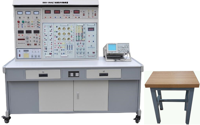實(shí)驗桌為鐵質(zhì)雙層亞光密紋噴塑結構,桌面為防火、防水、耐磨高密度板;左右設有兩個(gè)大抽屜(帶鎖),用于放置工具及資料。右邊設有放置示波器用的可拆卸擱板。