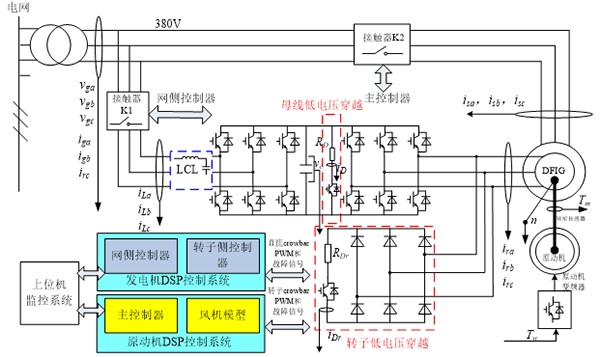 Ø實(shí)現風(fēng)速和風(fēng)力機模擬,機組并網(wǎng)控制,機組最大功率運行控制,機組恒速運行,機組限功率運行,機組低電壓穿越,機組脫網(wǎng)控制等控制功能;