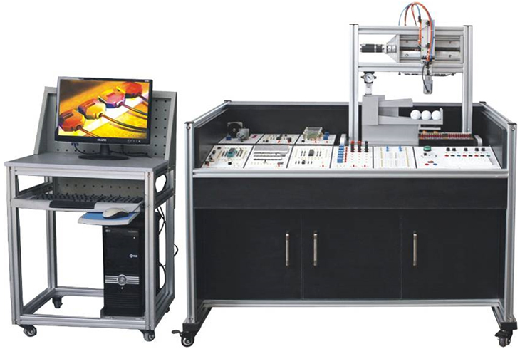 單片機技術(shù)應用實(shí)訓考核裝置,單片機功能控制實(shí)訓考核平臺采用烤漆鋼板制作的臺式結構。實(shí)訓臺的抽屜柜用于存放實(shí)訓模塊,抽屜柜與臺面之間布置實(shí)訓模塊安裝支架,最上一層是工作臺臺面。用于技能競賽時(shí)在臺面上放置設備安裝底板,在底板上安裝試題擬定的單片機控制裝置需要的模塊,連接控制電路,編寫(xiě)的控制程序輸入單片機后,按下運行指令開(kāi)關(guān),單片機控制裝置就按程序運行。放置在單片機實(shí)訓室中,這就是一張實(shí)訓臺。當講解理論或實(shí)訓項目中的相關(guān)知識時(shí),可以當做課桌;當需要進(jìn)行實(shí)際操作時(shí),將臺面打開(kāi),就露出放置在安裝支架上的模塊,在需要的實(shí)訓模塊間按實(shí)訓要求連接電路,編寫(xiě)控制程序,就可以按照設計的實(shí)訓項目進(jìn)行單片機技術(shù)的教學(xué)了,同時(shí)還能完成智能物料搬運裝置的提升實(shí)訓。
