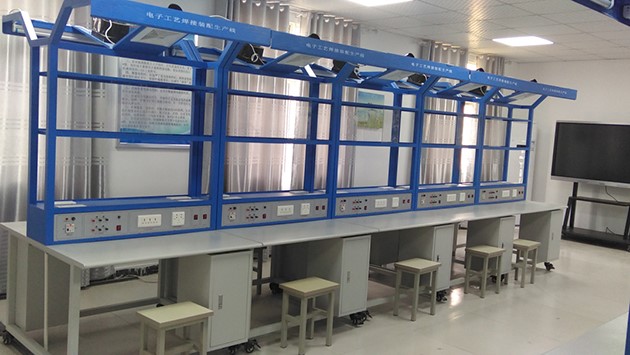 電子設計及操作實(shí)訓臺上提供日光燈(用于照明)2個(gè),透明的PVC板8個(gè),可夾放原理圖等資料,另外還配備三芯雙聯(lián)暗插座4個(gè)、兩芯暗插座4個(gè)、工具柜4個(gè),工作臺面設有綠色防靜電桌墊,整個(gè)裝配線(xiàn)安全可靠。