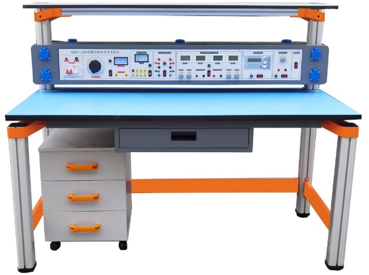 裝置由儀器架、主機箱、實(shí)驗桌、移動(dòng)矮柜、學(xué)生凳等組成。實(shí)驗裝置支架與實(shí)驗桌可組合、可拆裝。支架與桌腳一體,鋁合金結構。