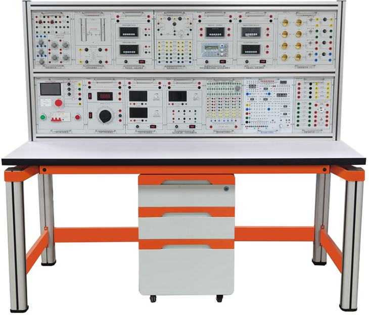 電工電子綜合實(shí)驗平臺由實(shí)驗桌、實(shí)驗臺架、存儲柜、實(shí)驗掛箱組件、配件等組成。