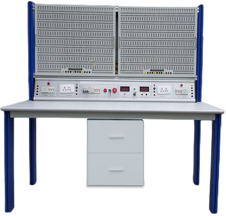 (1)★維修電工技能實(shí)訓操作臺由實(shí)訓屏(內置電源)、實(shí)訓桌、儲物柜三大部分組成;